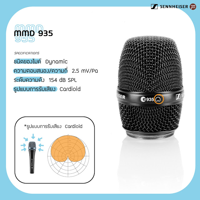 หัวไมค์ลอย Sennheiser MMD 935-1 BK Capsule ของแท้ๆ Capsule for Sennheiser Wireless Transmitter Microphone หัวไมโครโฟนไร้สายสำหรับเปลี่ยนหรือเป็นอะไหล่ Sennheiser MMD 935 เป็นหัวไมค์แบบ Dynamic Capsule มีรูปแบบการรับเสียง Cardioid Polar Pattern,ตอบสนองความถี่ 40 Hz – 18 kHz, เหมาะสำหรับชุดไมโครโฟนของ Sennheiser Handheld Transmitters, Includes Grille, สีดำ เสียงมาเต็ม ให้น้ำเสียงที่หนักแน่นชัดเจน ปลายใส ซิบ ใช้สำหรับไมค์ลอย Sennheiser Wireless microphone ของแท้ได้ทุกรุ่นที่หมุนหัวเปลี่ยนเพียงหมุนหัวเดิมออกแล้วหมุนใส่หัวใหม่แทนที่เท่านั้นเสียงก็เปลี่ยน สภาพเหมือนใหม่ ใครหาอยู่ทักได้